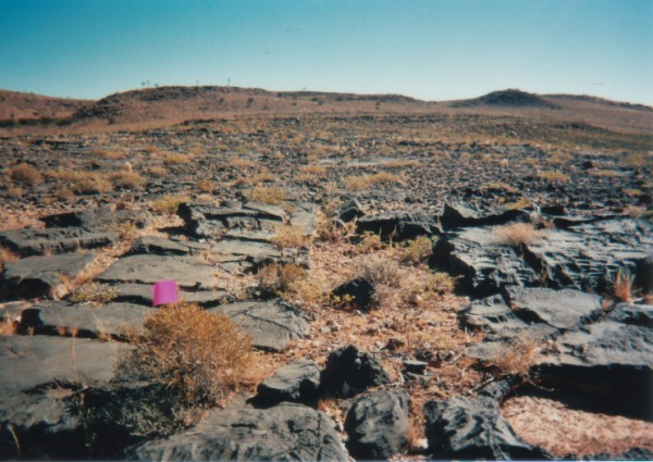 Das pinke Fähnchen zeigt den Weg durch das Geröllfeld.